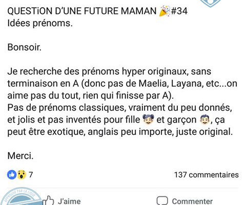 La semaine se termine. Il est de temps de voter et choisir le Prénom de la semaine ! Résultat du scrutin demain à 19h !
