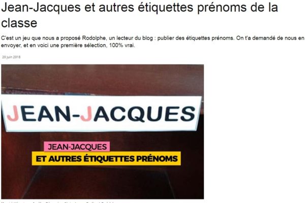 Le site Parents Profs nous dévoile une superbe collection de prénoms tirés des étiquettes chinées dans les écoles. C'est un jeu que nous a proposé Rodolphe, un lecteur du blog : publier des...