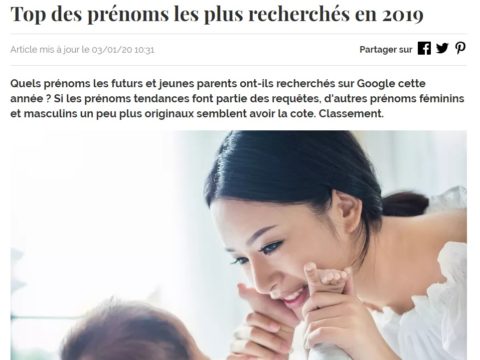 Quels prénoms les futurs et jeunes parents ont-ils recherchés sur Google cette année ? Si les prénoms tendances font partie des requêtes, d'autres prénoms féminins et masculins un peu plus...