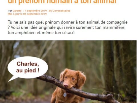 Tu ne sais pas quel prénom donner à ton animal de compagnie ? Voici une idée originale qui ravira surement ton mammifère, ton amphibien et même ton cétacé. Donner un nom humain à ton animal est...