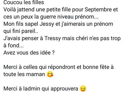 – Tu sais pourquoi tu portes ce prénom ? – Ma mère n’avait pas d’idées, elle a consulté des gens sur un groupe Facebook. Elle voulait quelque chose d’original. Il y avait...