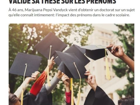 À 46 ans, Marijuana Pepsi Vandyck vient d'obtenir un doctorat sur un sujet qu'elle connaît intimement: l'impact des prénoms dans le cadre scolaire Marijuana Pepsi obtient son doctorat pour une thèse...