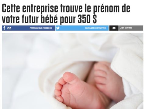 Vous attendez un enfant? Si vous êtes en panne d’inspiration lorsque vient le temps de choisir son nom, une jeune entreprise américaine pourrait vous aider, tout en vous délestant de quelques...