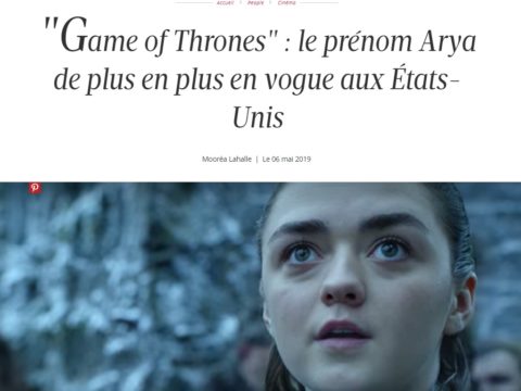 Arya Stark, héroïne badass de la série Game of Thrones, semble avoir inspiré de nombreux parents américains - et britanniques - au moment de choisir le prénom de leur fille. Si le prénom...