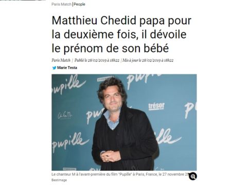 Matthieu Chedid papa pour la deuxième fois, il dévoile le prénom de son bébé