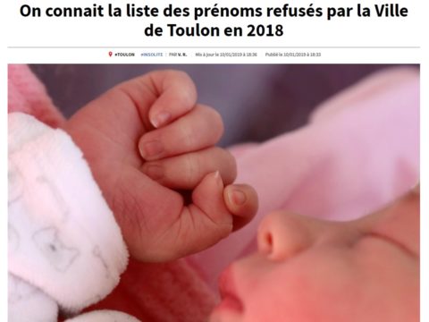 Chaque année, le service de l'état civil refuse quelques prénoms attribués par des parents. Cet exercice 2018 n'échappe pas à la règle... En effet, la Ville de Toulon a saisi le tribunal de grande...