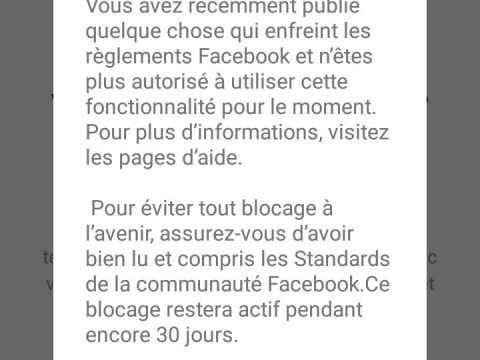 Si tu veux savoir pourquoi la Loec est exclue 30 jours de Facebook