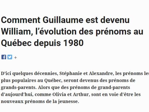 D’ici quelques décennies, Stéphanie et Alexandre, les prénoms les plus populaires au Québec, seront devenus des prénoms de grands-parents. Alors que des prénoms de grand-parents d'aujourd'hui,...